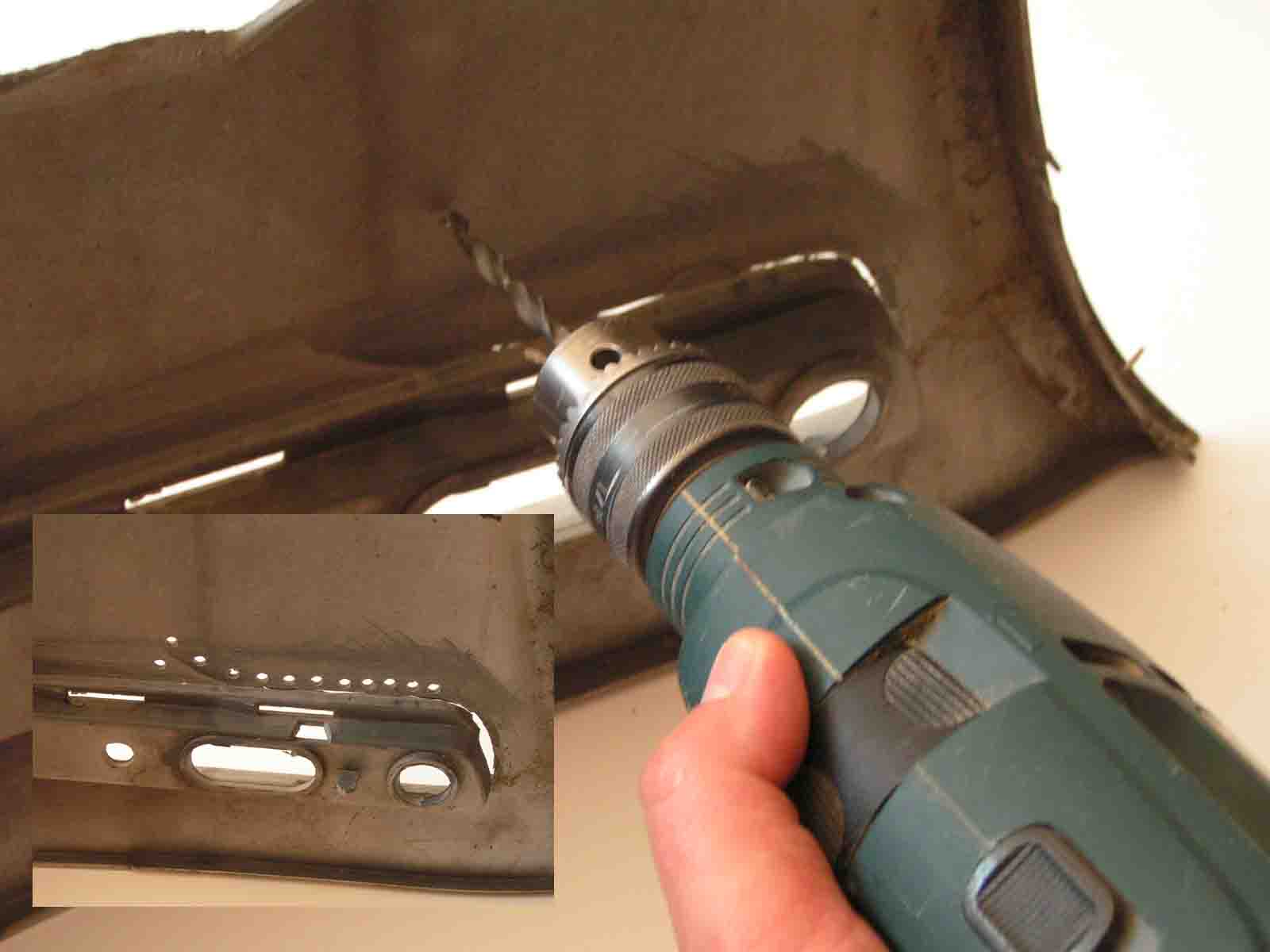 Vyvrtání série děr v okolí trhliny pro zvýšení pevnosti lepeného spoje